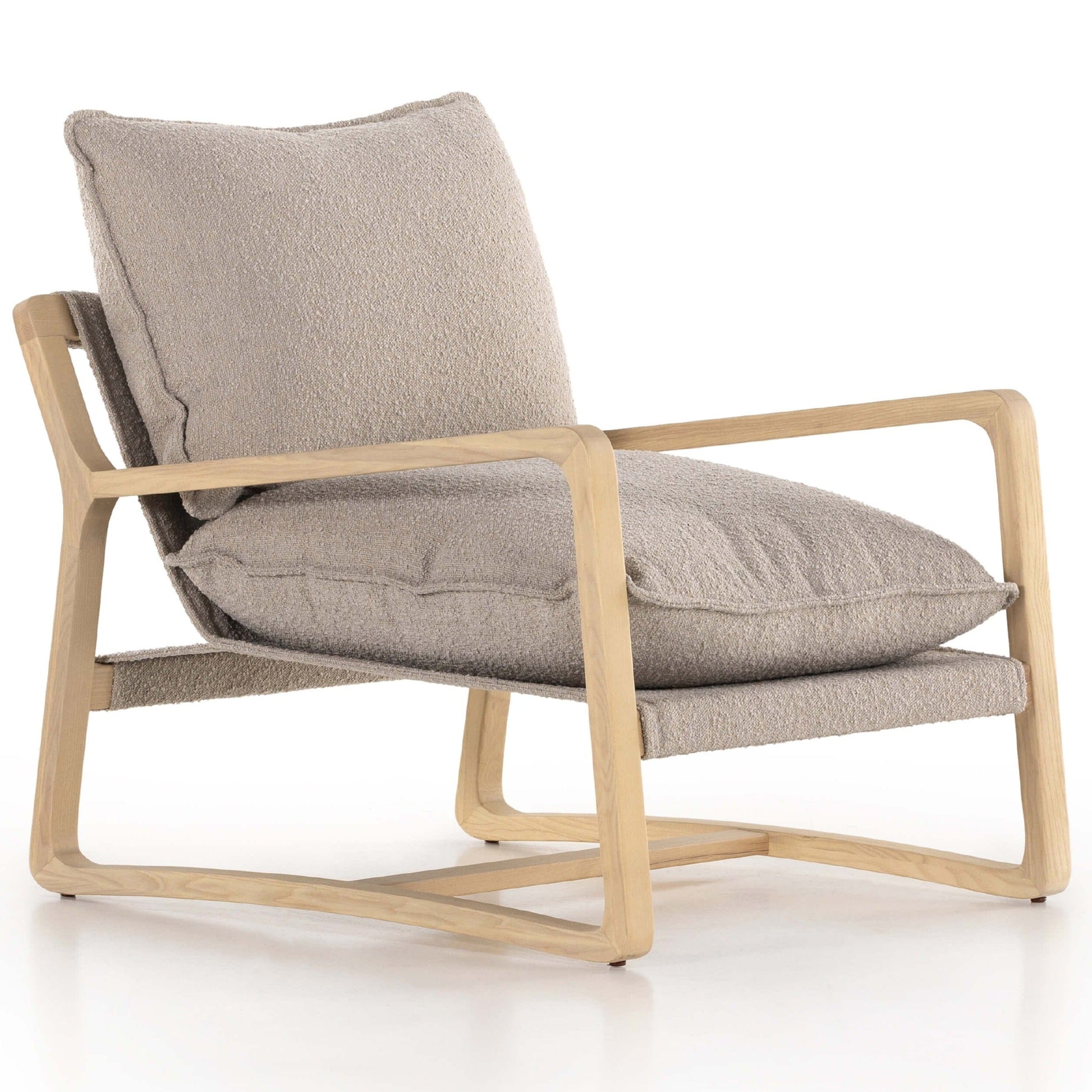 The perfect place to relax or curl up with a good book. Hand-shaped ash frame supports deep, low seating covered in cream-colored performance-grade upholstery exclusive to Four Hands.