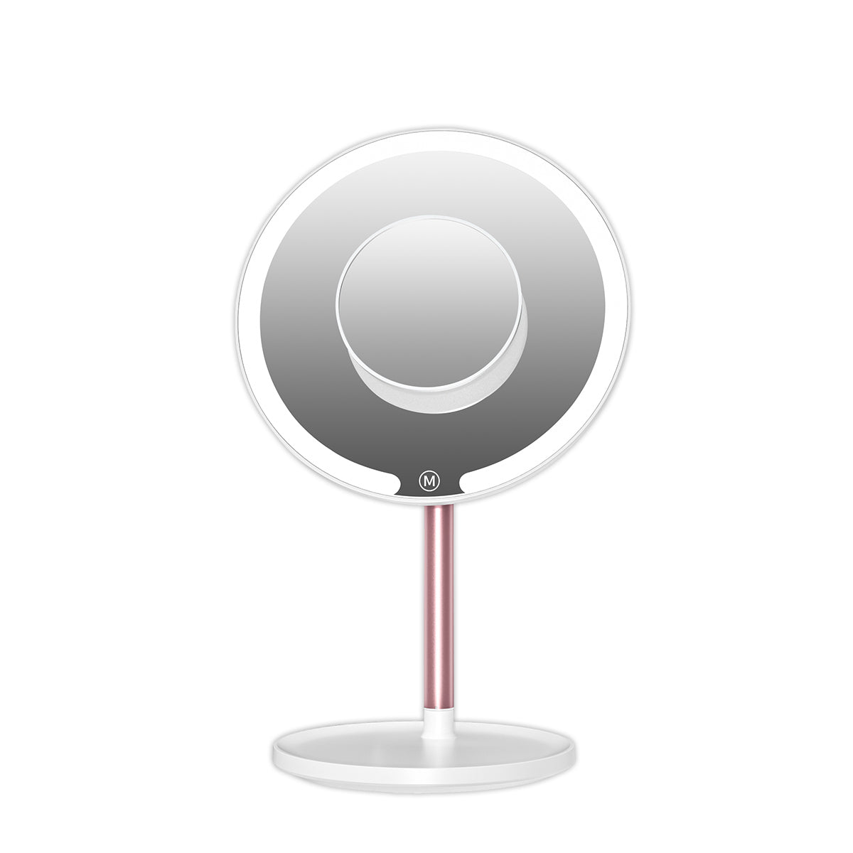 Everyone loves a multifunctional mirror, and the Affinity Tri-Tone LED Makeup Mirror is just that! With a 10x magnified mirror, tri-tone LED lighting, and a built-in tray, this makeup mirror is the perfect addition to any vanity space for everyday grooming. White with a rose gold stand that rotates 360 degrees, to reach all angles and a 10x magnifying mirror for all close up needs. The tray at the bottom can hold your small toiletries, hair clips and elastic bands. Portable and travel friendly, designed to be detachable at the neck and base, it can easily fit into your luggage. The Affinity can upgrade your beauty routine with help from all of its features.
