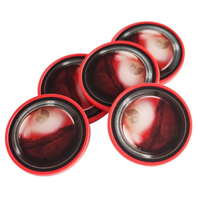 This pack comes with 65 custom-stickered, weighted chips. Identical to your unit chips in weight and feel, this upgrade makes moving around the Battle Mat feel like a dream. The heavy stacks are more difficult to knock over, more satisfying to stack, and add one more coat of visual polish to your Too Many Bones experience.