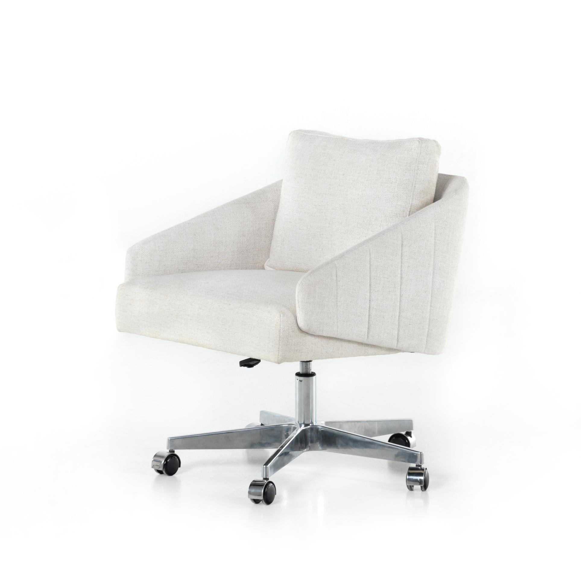 Everything needed to work in style. A nickel-polished aluminum base features casters for ease, with plush, angular upholstered seating in a versatile off-white. Height adjustable. Performance fabrics are specially created to withstand spills, stains, high traffic and wear, ensuring long-term comfort and unmatched durability.