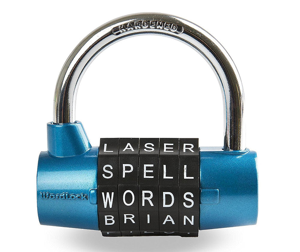Get Creative! With up to 100,000 possible combinations on this wordlock padlock, you can use words such as LASER, BRAIN, SPELL and more! With this easy to est padlock, you can change the combination as many times as you��d like, keeping your belongings secure. You can even use abbreviations and initials! This padlock will provide maximum security against theft with its 2 5/8 inch cast iron hardened steel shackle and body. Perfect for school lockers, the gym, sheds, tool boxes, or anywhere you need a secure indoor, outdoor padlock.Traditional combination locks are challenging to work and the number is hard to remember. Keyed padlocks can rust and corrode, or you can lose your keys. Wordlock is the way to go with simple to remember combinations and no keys required. Just your memory! Extra strong, extra secure, and easy to use, the days of forgetting combinations and losing keys are over! Security, creativity and usability come together in one. Because what good is a lock if you cannot remember the combination? COLOR: Blue-Black. DIMENSIONS: (HANDLE 1.2�� x 31mm) (BODY 2.5�� x 63mm)